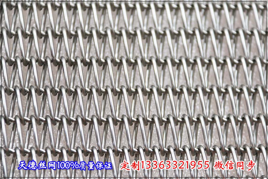 河北天德絲網制品有限公司生產輸送網鏈、不銹鋼網帶、金屬輸送帶、鏈網、鋼絲編織網、寬幅網帶:13363321955