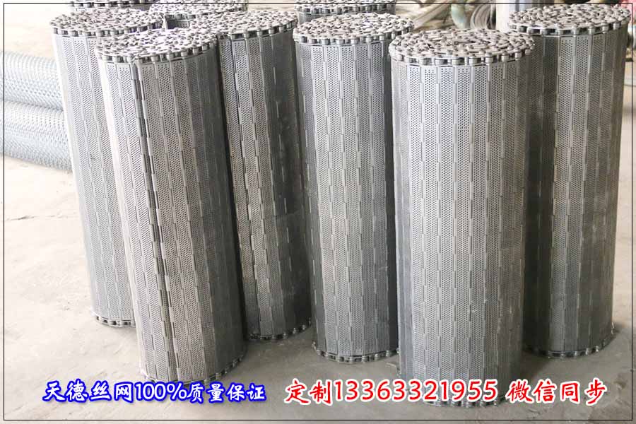 河北天德絲網制品有限公司生產不銹鋼網帶、鏈板、金屬輸送帶、耐磨損輸送網帶、擋板輸送帶:13363321955 http://m.rqnpht.com/