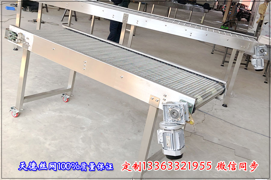 河北天德絲網制品有限公司生產網帶輸送機、不銹鋼網帶、金屬輸送帶、鏈條網狀輸送帶以及各種規格的不銹鋼輸送機、轉彎設備等。