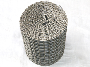 這種輸送帶采用的是由金屬片與圓金屬絲組成的,輸送帶孔縫隙大,